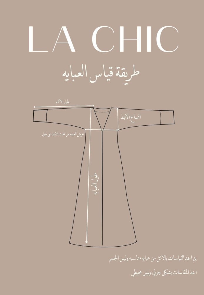 Please check the measurements before ordering and make sure it fits by comparing it to a suitable abaya